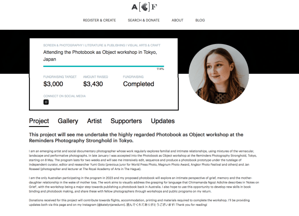 I set up a fundraiser using Creative Partnerships Australia’s Australian Cultural Fund platform. I’d seen other artists use the platform in the past and felt that it was a great way to raise funds outside of the usual grant rounds – particularly as it was February and I was leaving Australia in the first week of May. I also really liked that donations were tax deductible.